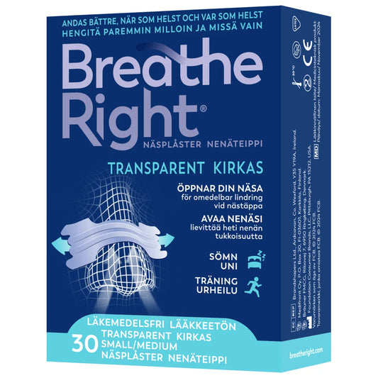 BREATHE RIGHT Nenäteippi kirkas S/M 30 kpl