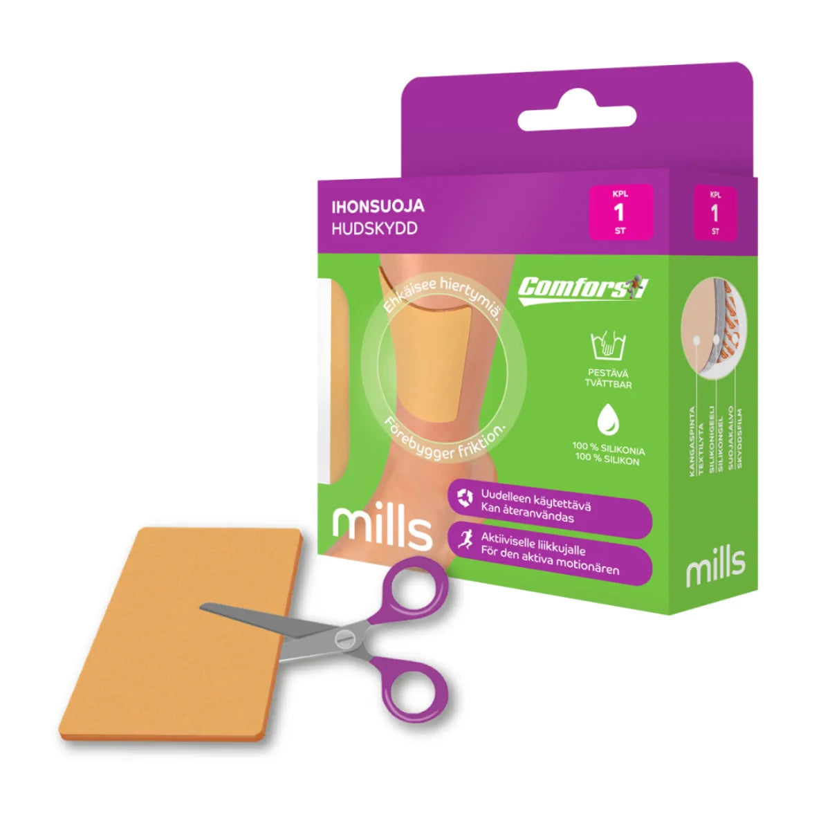 Comforsil Ihonsuoja lievittää painetta ja hankausta, vaimentaa iskua ja ehkäisee iho-ongelmia. 2 mm paksu, joustava silikonigeeli mukautuu huomaamattomasti iholle ja pysyy hyvin paikallaan ilman liimaa. Helppo leikata sopivaksi jalan eri alueille, kuten kantapäähän, vaivaisenluulle tai päkiään.