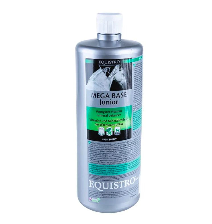 Mineraaleja ja vitamiineja nestemäisessä muodossa. Tuote sisältää kasvulle ja kehitykselle tärkeitä mineraaleja oikeassa suhteessa (kalsium, fostori ja magnesium). Lisäksi valmiste sisältää hivenaineita sekä vitamiineja varsan terveen kehityksen tueksi. Mega Base Junior soveltuu käytettäväksi imeväisille ja vieroitettaville varsoille sekä kasvun ja vieroituksen jälkeen nuorille hevosille.