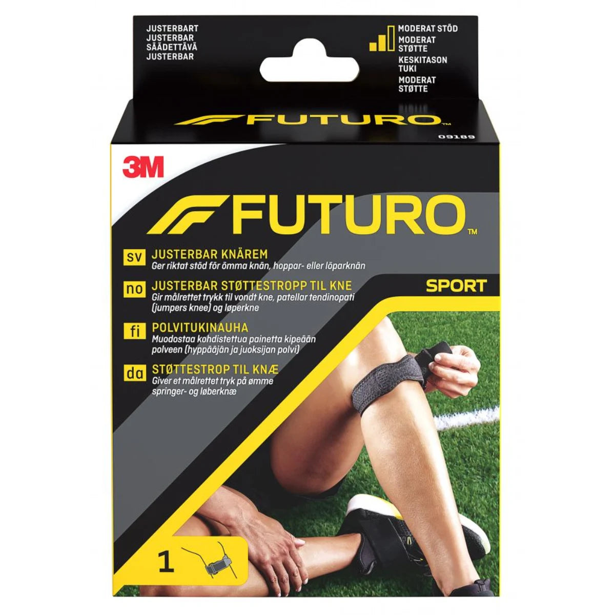 Futuro polvitukinauha on erityisesti suunniteltu kohdistamaan painetta kipeisiin polviin, mikä tekee siitä ihanteellisen apuvälineen tilanteissa, kuten jännetulehduksessa ja hyppääjän polvessa. Tuen keskiosassa on pehmustetyyny, joka kohdistaa painetta suoraan kipeään jänteeseen, tarjoten näin tehokasta lievitystä ja tukea. Vahvistettu pehmustetyyny on suunniteltu niin, että se ei puristu tai litisty käytössä, mikä takaa pitkäaikaisen käyttömukavuuden ja tehon. Säädettävä hihna mahdollistaa tuen tarkan sovittamisen yksilöllisten tarpeiden mukaan, ja sen joustavuus sopii päivittäiseen käyttöön.