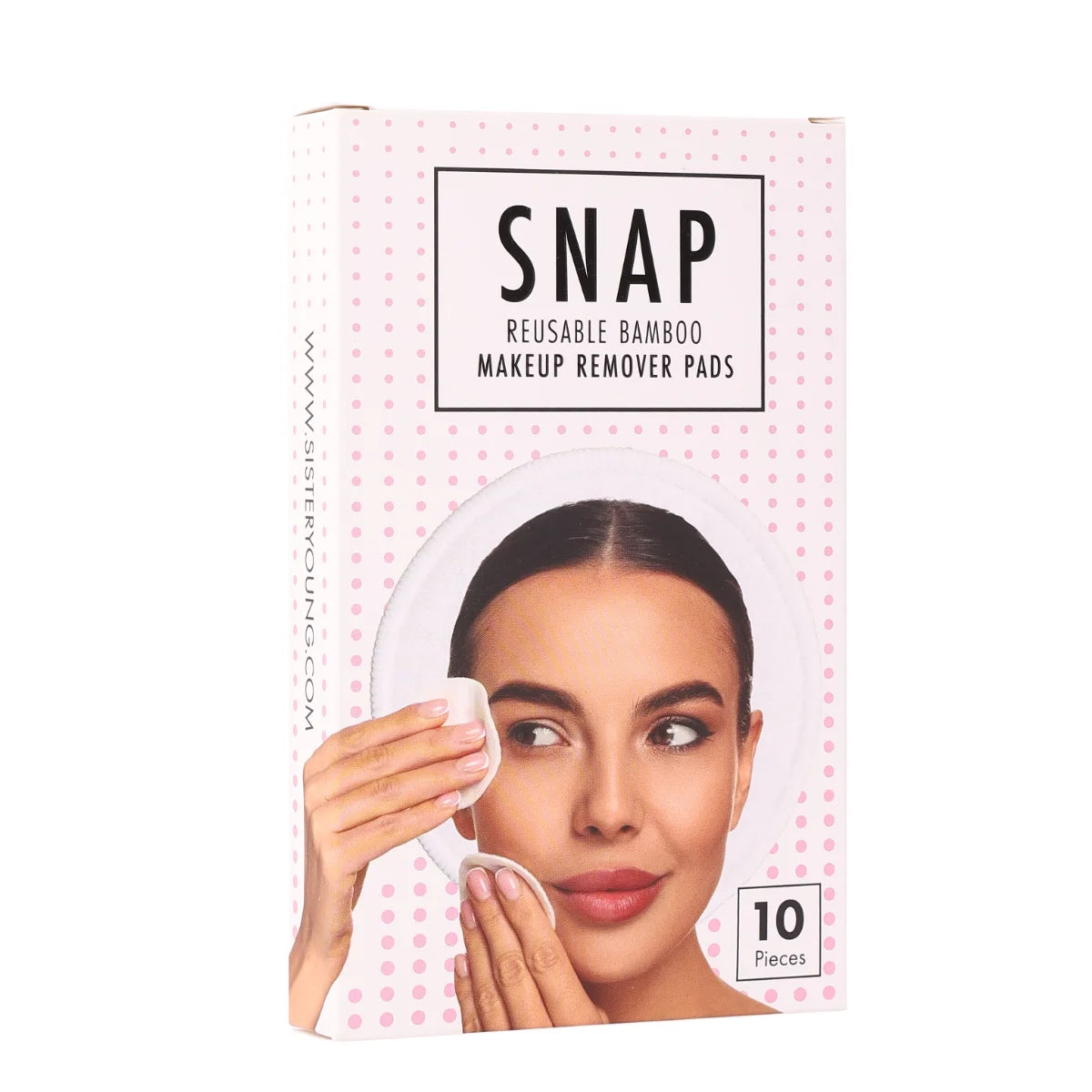 SisterYoung SNAP -meikinpoistolaput ovat pehmeitä, hellävaraisia ja uudelleenkäytettäviä meikinpoistoon tarkoitettuja lappuja. Ne ovat ympäristöystävällinen vaihtoehto kertakäyttöisille vanulapuille. SNAP-laput on valmistettu laadukkaasta bambuviskoosin, puuvillan ja polyesterin yhdistelmästä, joka kestää toistuvaa pesua ja käyttöä. Ne ovat hellävaraisia, mutta samalla tehokkaita meikinpoistossa.