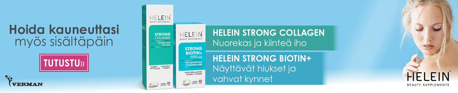 Helein on monipuolinen kauneusravintolisäsarja, jossa on tutkittuja ja tehokkaita ainesosia. Helein lisää...