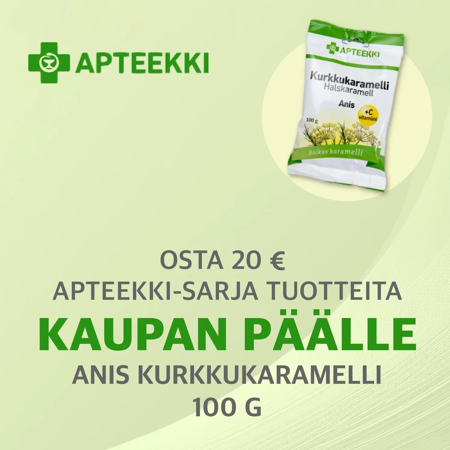 Apteekki-tuotesarjan tuotteita -20% – lahjatuote kaupan päälle