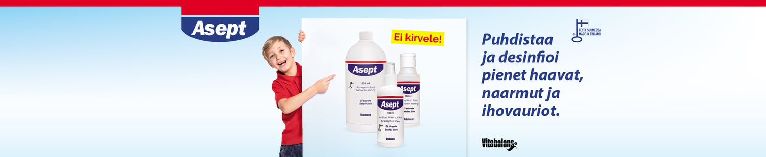Asept puhdistaa ja desinfioi pienet haavat ja ihonaarmut. Se rauhoittaa ja desinfioi...